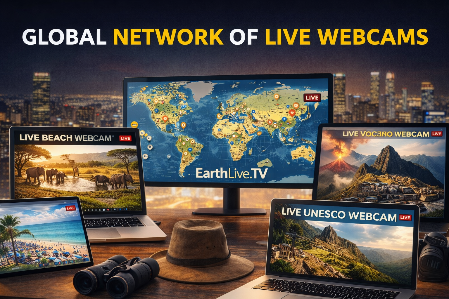 Platforms like EarthLive.TV are building directories of live webcams from around the world, organised by country, interest, and an interactive live map - with the ambitious goal of having at least one live camera in every country on Earth.