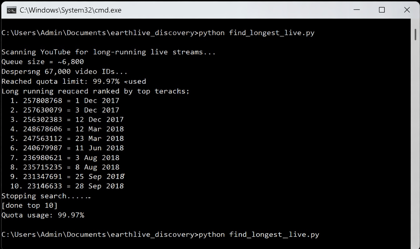 We ran a large-scale scan of YouTube’s live metadata to find the longest continuously running live streams that are still online right now - and the results are beautifully boring.